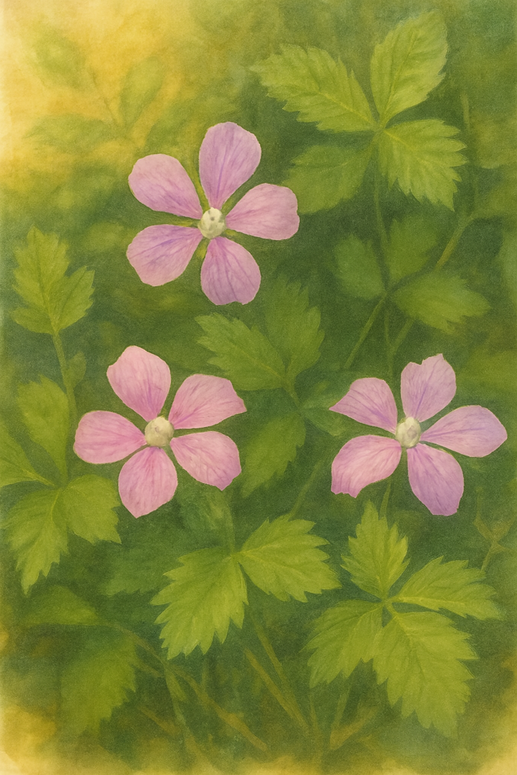 Rubus arcticus är känt för sina små, doftande blommor och sin förmåga att växa i kalla klimat. Växten symboliserar sällsynthet, motståndskraft och den stilla skönheten i nordliga ekosystem.