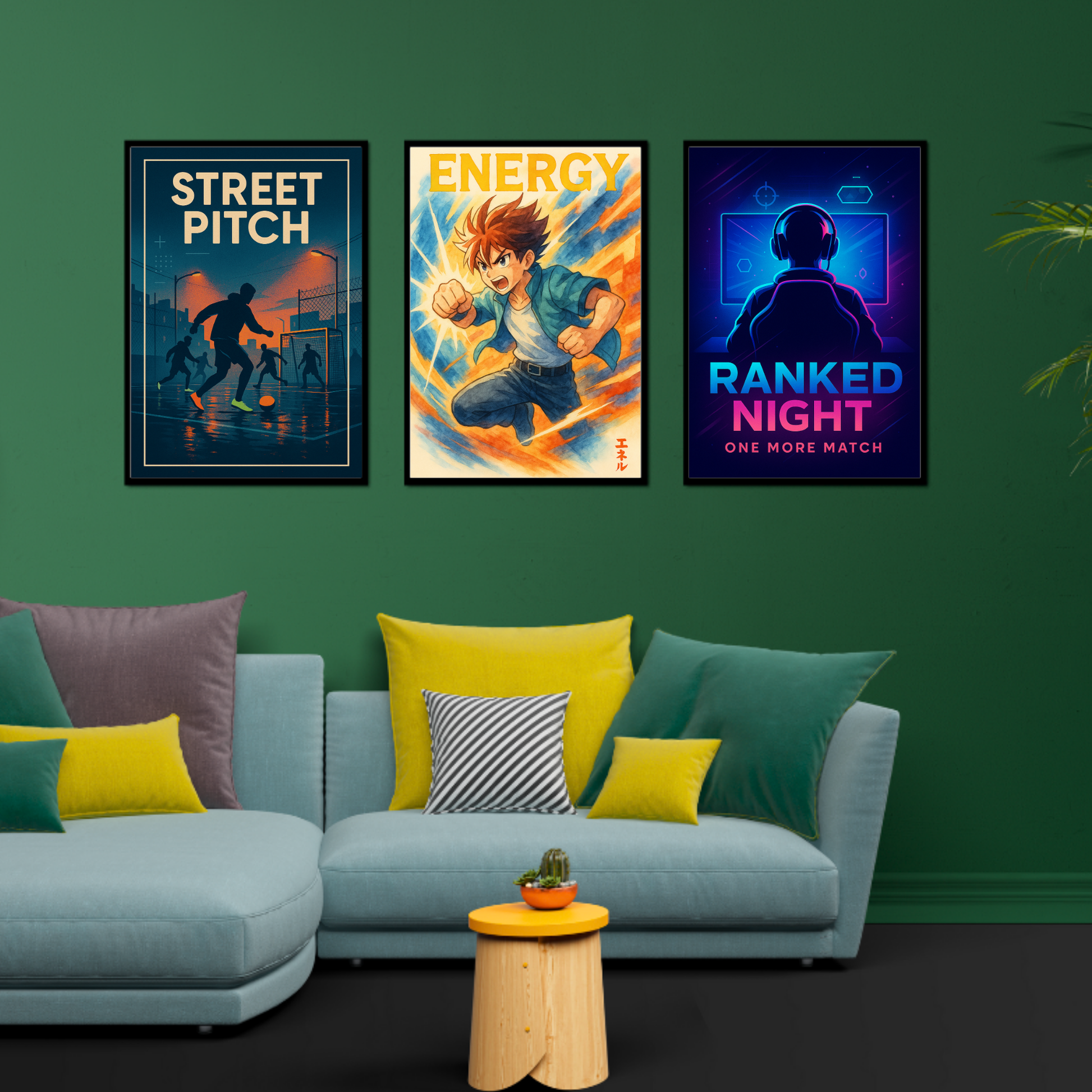 Denna poster är idealisk för spelrum, hemmakontor, kreativa studior, tonårsrum eller nöjesområden. Den ger djup, atmosfär och personlighet till utrymmen där prestation, strategi och digital kultur är en del av vardagen. Ranked Night talar direkt till drivna individer som värdesätter uthållighet, ambition och spänningen i tävling. Den förvandlar en enkel vägg till ett uttryck för tankesätt: fokuserad, obeveklig och redo för nästa utmaning.